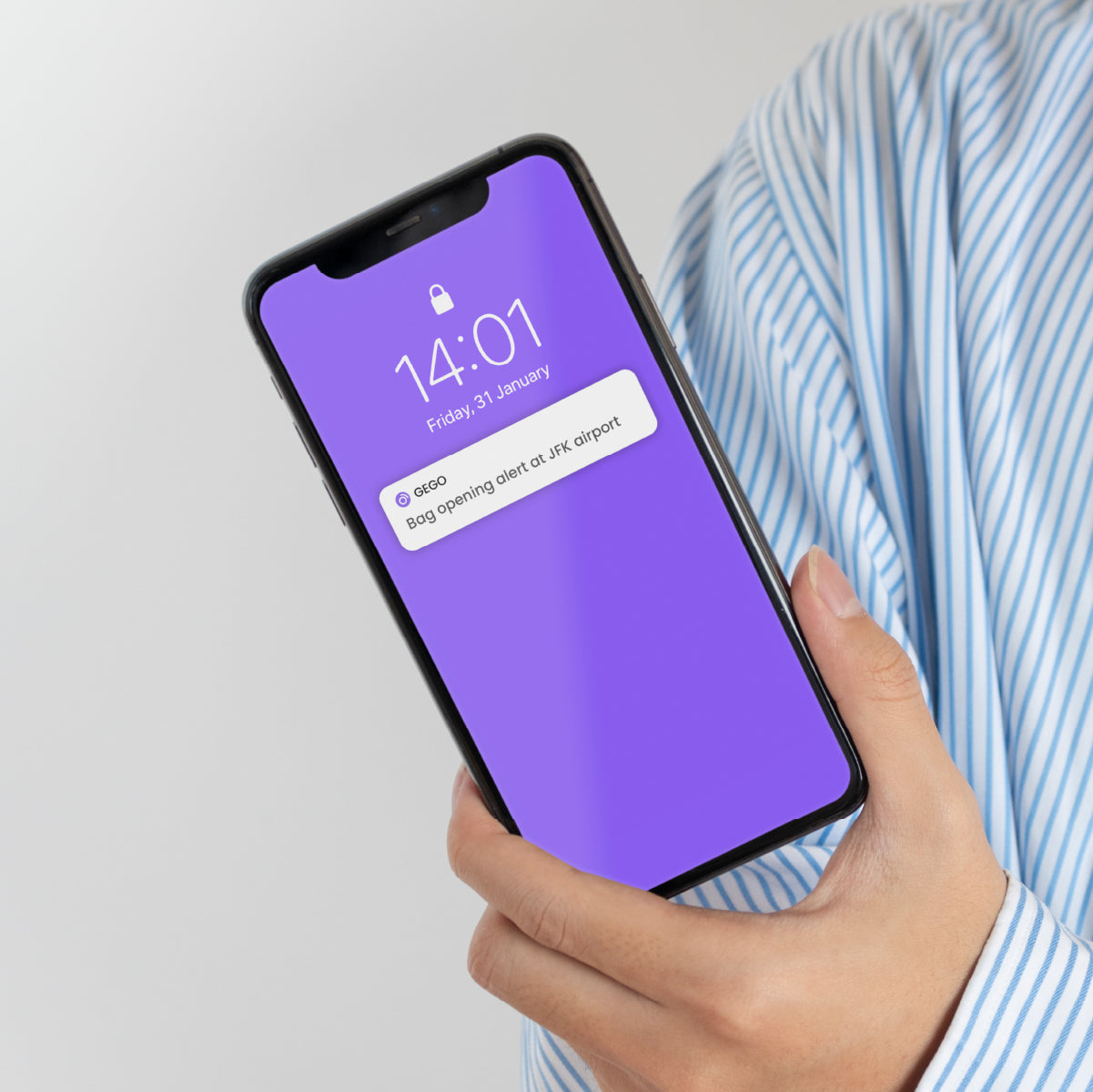 Bag Opening Alerts: GEGO PRO instantly notifies you if your bag has been tampered with.